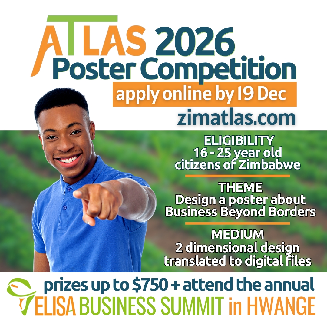 This year’s ATLAS Ventures Poster Competition is a national celebration of youth creativity, innovation and entrepreneurial thinking. Taking place as part of the ELISA Business Summit in Hwange on 19 March 2026, the competition invites young Zimbabweans aged 16-25 to imagine a future where African businesses reach beyond borders and express those ideas through powerful visual storytelling.